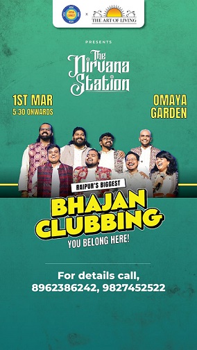 रायपुर,27फरवरी (वेदांत समाचार)। राजधानी रायपुर में 1 मार्च को एक विशेष आध्यात्मिक-संगीत कार्यक्रम “भजन क्लबिंग: द डिवोशनल नाइट” का आयोजन किया जा रहा है। यह कार्यक्रम ओमाया गार्डन, रायपुर में शाम 5:30 बजे से शुरू होगा, जहां भक्तिमय भजनों और आधुनिक संगीत का अनूठा मिश्रण प्रस्तुत किया जाएगा।