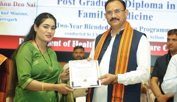रायपुर,27फरवरी (वेदांत समाचार)। राजधानी के सिविल लाइन स्थित सर्किट हाउस में क्रिश्चियन मेडिकल कॉलेज, वेल्लोर द्वारा आयोजित पी. जी. डिप्लोमा इन फैमिली मेडिसिन के दीक्षांत समारोह का आयोजन हुआ। स्वास्थ्य मंत्री श्याम बिहारी जायसवाल ने समारोह में सफलतापूर्वक डिप्लोमा पाठ्यक्रम पूर्ण करने वाले सभी डॉक्टरों को प्रमाणपत्र प्रदान किया।