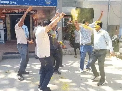 छत्तीसगढ़,05मार्च (वेदांत समाचार)। छत्तीसगढ़ के अलग-अलग जिलों में पुलिसकर्मी होली के रंग में सराबोर नजर आ रहे हैं। लगातार करीब 72 घंटे तक कानून-व्यवस्था की ड्यूटी संभालने के बाद जवानों ने थानों और पुलिस लाइन में साथियों के साथ होली का जश्न मना रहे हैं। ड्यूटी की थकान के बीच जवानों का होलियाना अंदाज देखने को मिला है।