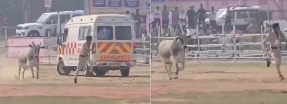 पटना,14 मार्च: बिहार के मुख्यमंत्री नीतीश कुमार आज बेगूसराय दौरे पर आने वाले है। इस बीच हेलीपैड पर एक बैल के घुस आने से अफरा-तफरी मच गई। हेलीपैड में घुसे बैल ने मौके पर तैनात पुलिसकर्मियों को ही दौड़ा दिया। बाद में अन्य सुरक्षाकर्मियों ने बैल को वहां से खदेड़कर बाहर भगा दिया।