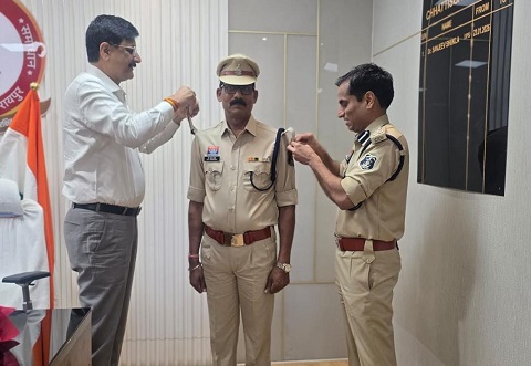 रायपुर,14 मार्च (वेदांत समाचार)। पुलिस कमिश्नर कार्यालय सिविल लाइन में शनिवार को पदोन्नति समारोह आयोजित किया गया, जिसमें एंटी क्राइम एंड साइबर यूनिट रायपुर में पदस्थ सहायक उपनिरीक्षक गेंदूराम नवरंग को विभागीय पदोन्नति देकर उपनिरीक्षक बनाया गया। इस अवसर पर पुलिस कमिश्नर डॉ. संजीव शुक्ला और अतिरिक्त पुलिस कमिश्नर अमित तुकाराम कांबले ने उनके कंधे पर स्टार लगाकर उन्हें शुभकामनाएं दीं।