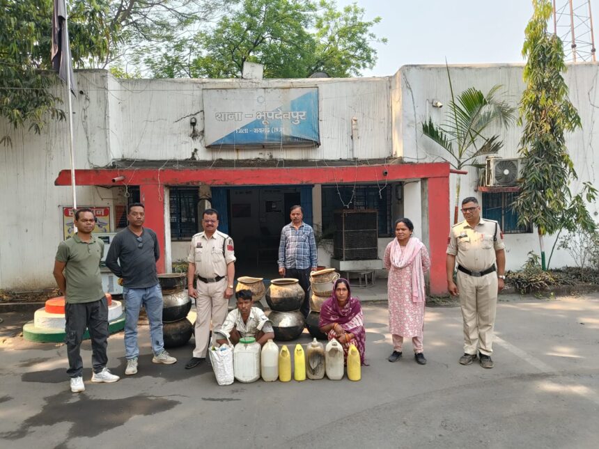 भूपदेवपुर पुलिस की दो बड़ी शराब रेड, 70 लीटर महुआ शराब जब्त
