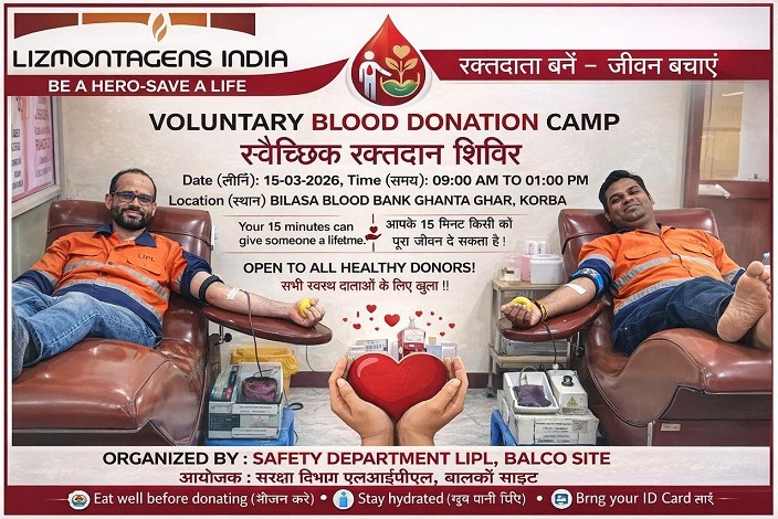 कोरबा,15मार्च (वेदांत समाचार)। नेशनल सेफ्टी मंथ के उपलक्ष्य में LIPL सेफ्टी टीम (बालको साइट) द्वारा रविवार को कोरबा स्थित बिलासा ब्लड बैंक में स्वैच्छिक रक्तदान शिविर का आयोजन किया गया। सामुदायिक स्वास्थ्य और सुरक्षा के प्रति जागरूकता बढ़ाने के उद्देश्य से आयोजित इस शिविर में बड़ी संख्या में लोगों ने उत्साहपूर्वक भाग लिया।