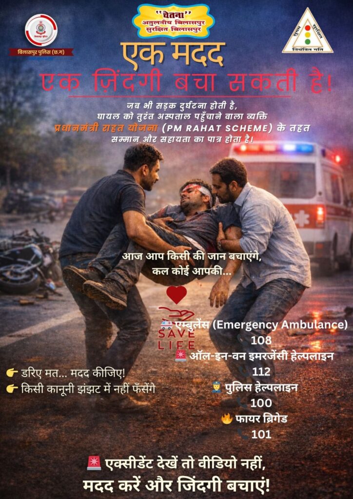 बिलासपुर, 17 मार्च 2026 (वेदांत समाचार)। सड़क दुर्घटनाओं में घायल लोगों को त्वरित और गुणवत्तापूर्ण उपचार उपलब्ध कराने के उद्देश्य से केंद्र सरकार की PM-RAHAT योजना के तहत बिलासपुर जिले में कैशलेस इलाज की सुविधा दी जा रही है। यातायात पुलिस ने बताया कि जिले के सभी पंजीकृत अस्पतालों में यह सुविधा लागू है।
