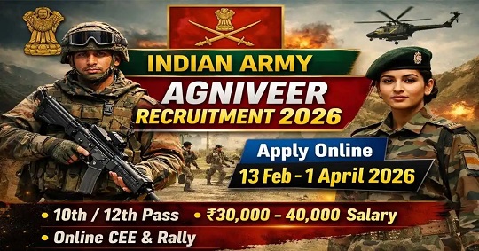 एमसीबी/18 मार्च 2026/ जिले के युवाओं के लिए देश सेवा का एक बेहतरीन अवसर सामने आया है। अग्निपथ योजना के अंतर्गत अग्निवीर भर्ती प्रक्रिया 13 फरवरी 2026 से शुरू होकर 01 अप्रैल 2026 तक जारी है। यह योजना युवाओं को भारतीय सेना में शामिल होकर राष्ट्र सेवा का अवसर प्रदान करती है, साथ ही उन्हें अनुशासन, आधुनिक कौशल और आत्मनिर्भरता की दिशा में सशक्त बनाती है।