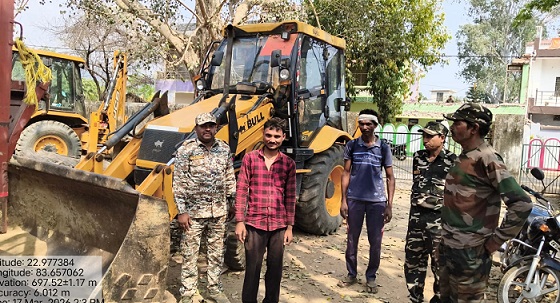 मौके पर एक बिना पंजीयन क्रमांक की जे.सी. बी. मशीन पाई गई, जिसका चेचिस नम्बर BCECH10BCC2200235 एवं इंजन नम्बर 4H3103/2220065 है द्वारा अवैध उत्खनन होना पाया गया। स्थल पर उपस्थित जे.सी.बी. चालक ओम प्रकाश दुबे आ. जनेश्वर दुबे, निवासी ग्राम कुमोरंगा, तहसील रामचन्द्रपुर, जिला बलरामपुर से आवश्यक वैध दस्तावेज प्रस्तुत करने हेतु कहा गया, किन्तु चालक द्वारा कोई भी वैध अनुमति अथवा अभिलेख प्रस्तुत नहीं गया। पूछताछ के दौरान चालक द्वारा बताया गया कि वह विजय प्रजापति आ. विष्णु प्रसाद प्रजापति, निवासी सोहागपुर, जिला शहडोल (म.प्र.) के निर्देश पर एयरटेल पाइपलाइन बिछाने हेतु खुदाई कार्य किया जा रहा था।