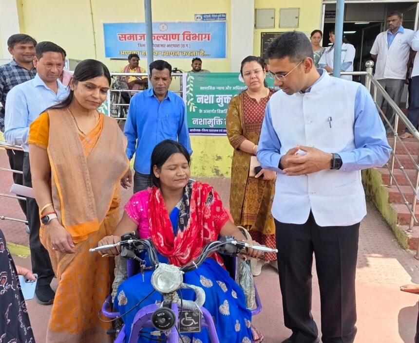बलौदाबाजार,19 मार्च 2026/कलेक्टर कुलदीप शर्मा ने गुरुवार को कृषि उपज मंडी बलौदाबाजार में समाज कल्याण विभाग के माध्यम से मॉ रिहेब आसरा एलिम्कों द्वारा पूर्व में चिन्हांकित 5 दिव्यांगजनों को सहायक उपकरण प्रदान किया।