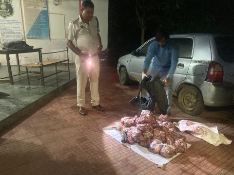 कुछ ही देर बाद संदिग्ध वाहन को रोककर तलाशी ली गई। जांच के दौरान वाहन से कुल 60 पैकेट (प्रत्येक लगभग एक-एक किलो) संदिग्ध मांस बरामद किया गया। चालक की पहचान जीसान हुसैन (24), निवासी ग्राम बनडेगा, थाना तलसरा, जिला सुंदरगढ़ (ओडिशा) के रूप में हुई।