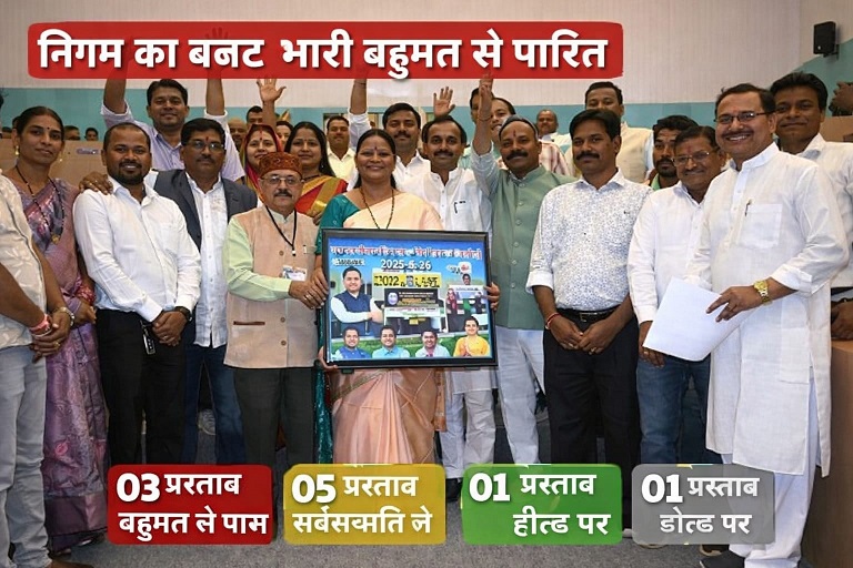 कोरबा,25 मार्च 2026 – आज सम्पन्न नगर पालिक निगम कोरबा के साधारण सम्मिलन में पुनरीक्षित बजट वर्ष 2025-26 एवं बजट वर्ष 2026-27 भारी बहुमत से पारित किया गया, इस पर केवल 04 सदस्यों ने हाथ उठाकर अपना विरोध दर्ज कराया। इसी प्रकार निगम के बजट सहित कुल 03 प्रस्ताव बहुमत से पास किये गये, जबकि 05 प्रस्ताव सर्वसम्मति से पारित हुये, वहीं बुधवारी बाजार पुनर्विकास परियोजना संबंधी 01 प्रस्ताव फिलहाल होल्ड पर रखा गया है।