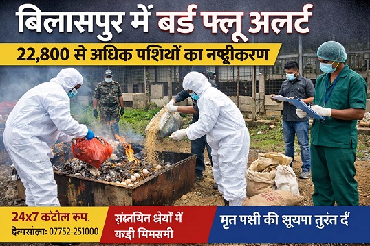 स्थिति की गंभीरता को देखते हुए जिला प्रशासन ने कलेक्ट्रेट परिसर में 24 घंटे संचालित ‘बर्ड फ्लू नियंत्रण कक्ष’ स्थापित किया है। आम नागरिकों की सहायता के लिए हेल्पलाइन नंबर 07752-251000 जारी किया गया है, जहां किसी भी संदिग्ध गतिविधि या मृत पक्षियों की सूचना दी जा सकती है।