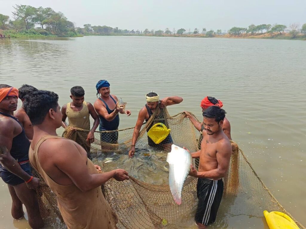 कोरबा 27 मार्च 2026। विकासखंड करतला के ग्राम उमरेली स्थित जय सिंगारासती मछुआ सहकारी समिति मर्यादित ने यह सिद्ध किया है कि यदि सही योजना, संसाधनों का कुशल उपयोग और मेहनत एक साथ हों, तो ग्रामीण आजीविका में उल्लेखनीय वृद्धि संभव है। समिति ने अपने ग्राम पंचायत के सिंघरी तालाब, पुरैनहा तालाब, घेसरा डबरी और डबरी तालाब जिनका कुल रकबा 8.972 हेक्टेयर है, को 10 वर्ष के लिए लीज पर लेकर मछली पालन का कार्य प्रारंभ किया।
