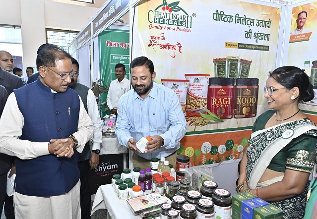 मुख्यमंत्री श्री साय ने वनोपज आधारित स्टालों का किया अवलोकन