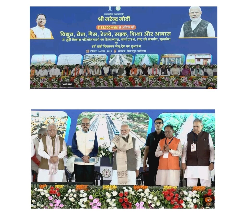 Hon’ble Prime Minister laid the foundation stone and dedicated to the nation multiple developmental and transformative projects related to Power, Oil & Gas, Rail, Road, Education and Rural Housing worth more than Rs 33,700 crore at a public programme in Bilaspur, Chhattisgarh in the presence of Hon’ble Governor of Chhattisgarh Shri Ramen Deka, Hon’ble Chief Minister Shri Vishnu Dev Sai, Hon’ble Union Minister of Power and Housing & Urban Affairs Shri Manohar Lal, Hon’ble Speaker of Chhattisgarh Legislative Assembly Dr Raman Singh, Hon’ble Minister of State for Housing & Urban Affairs Shri Tokhan Sahu, Hon’ble Ministers of the Govt of Chhattisgarh and Hon’ble MPs and MLAs.