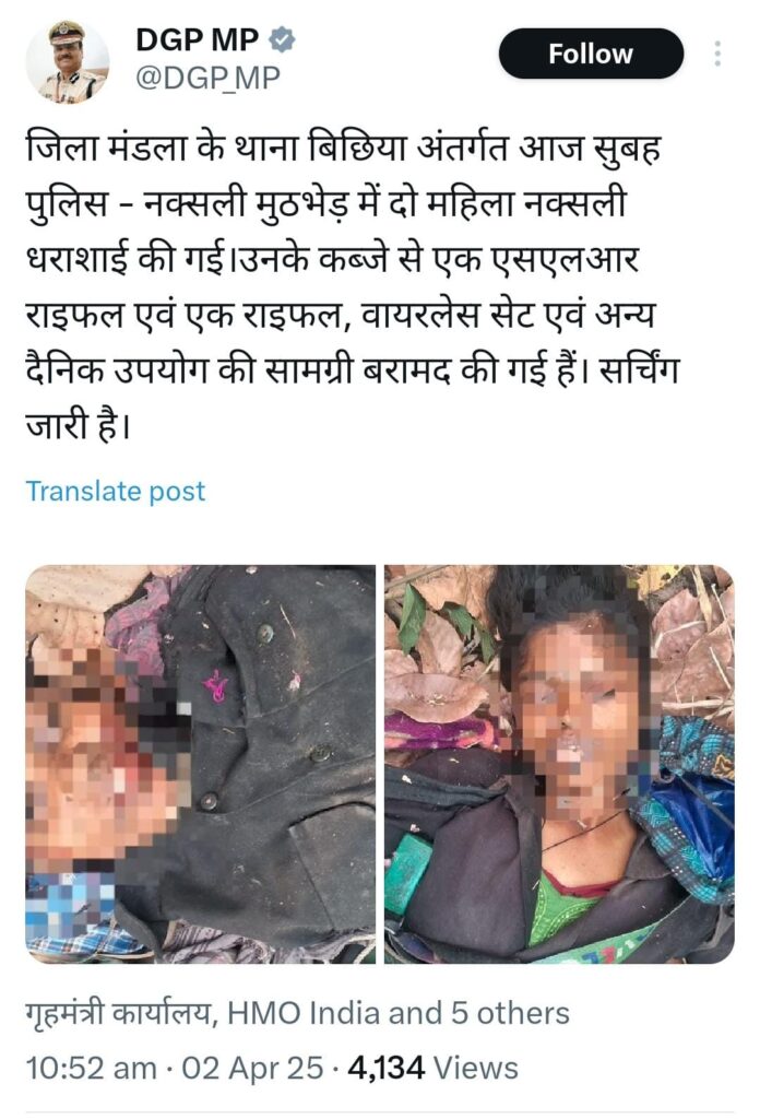 मध्य प्रदेश,02 अप्रैल 2025। मंडला जिले के बिछिया थाना अंतर्गत घने जंगल में पुलिस और नक्सलियों के बीच हुई मुठभेड़ में सुरक्षा बल के हॉकफोर्स के जवानों ने 14-14 लाख की दो इनामी महिला नक्सली ममता और प्रमिला को ढेर कर दिया है। मुठभेड़ के दौरान जवानों ने हथियार, एसएलआर राइफल एवं अन्य सामग्री बरामद की है।