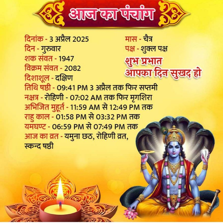 मेष, राशि 3 अप्रैल 2025 राशिफल दिन आपके लिए नया घर या दुकान खरीदने के लिए अच्छा रहेगा। आपको अपने परिवार के सदस्यों का पूरा सहयोग मिलेगा। आपका जीवनसाथी आपसे कुछ मांग सकता है। नवविवाहित लोगों के जीवन में कोई नया मेहमान आ सकता है। पारिवारिक कलह आपके लिए परेशानी का सबब बन सकती है। आपको अपने बच्चों की संगति पर विशेष ध्यान देना होगा, अन्यथा वे किसी गलत काम की ओर बढ़ सकते हैं। आप अपने किसी मित्र के स्वास्थ्य को लेकर चिंतित हो सकते हैं। आपको अपने भाई-बहनों का पूरा सहयोग मिलेगा।