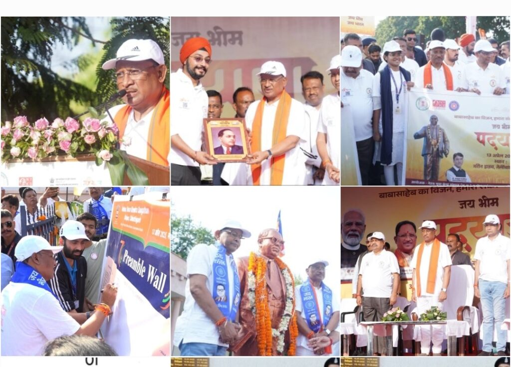 रायपुर,13 अप्रैल 2025 । भारत का संविधान हर नागरिक के लिए पवित्र ग्रंथ है, जो हमें गरिमापूर्ण जीवन का अधिकार देता है। हमारा विशाल लोकतंत्र संविधान की मजबूत नींव पर खड़ा है और बाबा साहब इस ग्रंथ के शिल्पकार थे। मुख्यमंत्री श्री विष्णु देव साय ने आज राजधानी रायपुर के तेलीबांधा तालाब से ‘जय भीम पदयात्रा’ का शुभारंभ करते हुए यह बात कही।