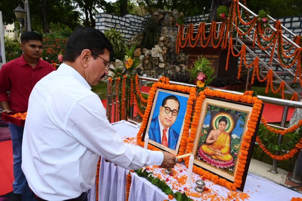 प्रारंभ में मुख्य अतिथि ने गौतम बुद्ध एवं बाबा साहेब के चित्र के समीप दीप प्रज्जवलित कर कार्यक्रम का शुभारम्भ किया उपरांत गौतम बुद्ध एवं बाबा साहेब के चित्र पर मुख्य अतिथि एवं विशिष्ट अतिथियों ने माल्यार्पण किया तत्पश्चात बाबा साहेब भीमराव अम्बेडकर की स्थापित प्रतिमा पर मुख्य अतिथि, विशिष्ट अतिथियों, विभागाध्यक्षों, श्रमसंघ पदाधिकारियों, एससी/एसटी एसोसिएशन, सिस्टा के पदाधिकारियों, अधिकारियों, कर्मचारियों ने बारी-बारी से माल्यार्पण किया।