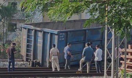 कर्नाटक के बेलगावी में मंगलवार सुबह एक मालगाड़ी के पटरी से उतर जाने की घटना सामने आई है, जिससे इलाके में हड़कंप मच गया। यह हादसा बेलगावी रेलवे स्टेशन से मात्र आधा किलोमीटर की दूरी पर हुआ, जब मालगाड़ी बेलगावी से हुबली की ओर जा रही थी। उसी समय यह घटना हुई। बताया जा रहा है कि चलती हुई ट्रेन के तीन डिब्बे अचानक पटरी से उतर गए, जिससे रेल यातायात पर असर पड़ा है।