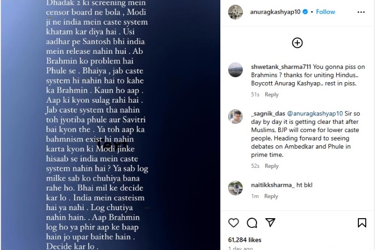 अनुराग के इस कमेंट के बाद ब्राह्मण समुदाय के कई लोगों ने उनकी आलोचना शुरू कर दी. ट्विटर और इंस्टाग्राम पर #BoycottAnuragKashyap और #ArrestAnuragKashyap जैसे हैशटैग ट्रेंड करने लगे. कई यूजर्स ने उन्हें नफरत फैलाने वाला बताया, तो कुछ ने कानूनी कार्रवाई की मांग भी की.