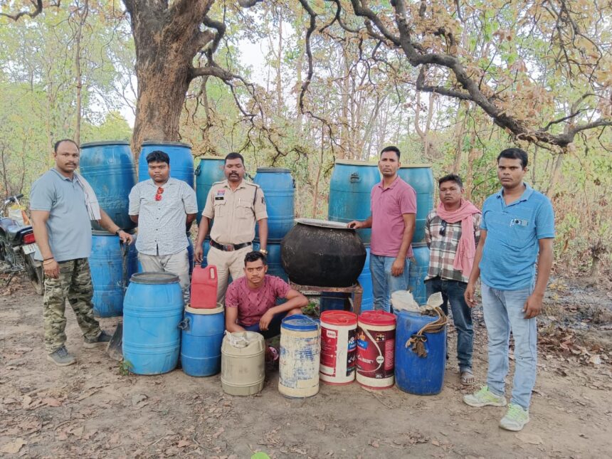 रायगढ़, 21 अप्रैल, (वेदांत समाचार)। पुलिस अधीक्षक दिव्यांग पटेल के दिशा-निर्देशन में चक्रधरनगर पुलिस ने शनिवार 20 अप्रैल 2025 को एक बड़ी कार्रवाई को अंजाम देते हुए ग्राम भगोरा के सपनई नाला जंगल में संचालित अवैध महुआ शराब निर्माण ठिकाने पर छापा मारकर भारी मात्रा में शराब जब्त की और एक आरोपी को गिरफ्तार किया। थाना प्रभारी निरीक्षक अमित शुक्ला को सूचना मिली थी कि जंगल क्षेत्र में बड़े पैमाने पर महुआ शराब बनाई जा रही है। सूचना मिलते ही वरिष्ठ अधिकारियों को अवगत कराते हुए थाना प्रभारी ने टीम के साथ जंगल का घेराव कर रेड की योजना बनाई।