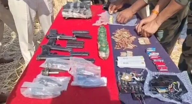 गुप्त सूचना के आधार पर चलाए गए सर्च ऑपरेशन में दो बड़े पैकेट मिले, जिनमें 4.5 किलो आरडीएक्स, 5 हैंड ग्रेनेड, 3 पिस्तौल, 8 मैगजीन, 220 जिंदा कारतूस, 2 बैटरी चार्जर और 2 रिमोट कंट्रोल डिवाइस बरामद हुए हैं। अधिकारियों का कहना है कि यह सामग्री किसी बड़े आतंकी हमले की तैयारी का हिस्सा हो सकती थी।