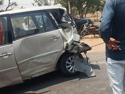 राजस्थान,27अप्रैल 2025 : सीकर में खाटूश्याम जी जाने के लिए गूगल मैप का सहारा ले रही पंजाब नंबर की इनोवा कार ने अचानक ब्रेक लगा दिया। पीछे से आ रहे ट्रक ने इनोवा को टक्कर मार दी, जिससे कार डिवाइडर फांदकर सामने से आ रही दो कारों से टकरा गई। राष्ट्रीय राजमार्ग-52 पर लाखनी मोड़ पर रविवार दोपहर हादसा हुआ।