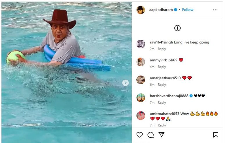 फैंस धर्मेंद्र के स्वीमिंग वीडियो को देखकर काफी इंस्पायर हो रहे हैं. एक ने लिखा, “धर्मेंद्र सर के लिए रिस्पेक्ट हमेशा से प्यारे इंसान.” जबकि दूसरे ने लिखा, “पानी में कसरत. मांसपेशियों के साथ फिट रहने के लिए शुभकामनाएं.” धर्मेंद्र के बेटे और अभिनेता बॉबी देओल ने भी कमेंट सेक्शन में हार्ट इमोजी की एक सीरीज छोड़ी. बेटी ईशा देओल ने भी स्विमिंग पूल पोस्ट पर प्यार भरा रिएक्शन शेयर किया.