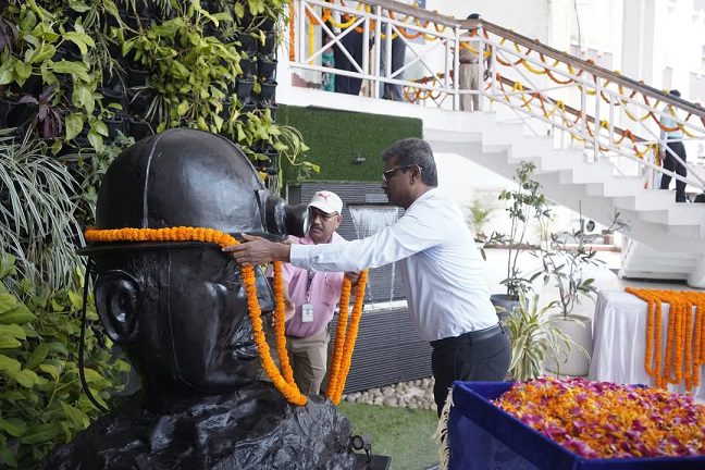 इस अवसर पर निदेशक (तकनीकी संचालन सह योजना परियोजना) जे. फ्रेंकलिन कुमार द्वारा निदेशक (वित्त) डी. सुनील कुमार, मुख्य सतर्कता अधिकारी हिमांशु जैन एवं अन्य वरिष्ठ अधिकारियों ने मुख्यालय परिसर स्थित श्रमिक प्रतिमा पर माल्यार्पण किया |