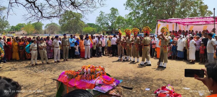 बालोद,28अप्रैल (वेदांत समाचार) । बालोद विकासखंड के ग्राम मटिया (पी) में उस समय मातम छा गया जब बीएसएफ के जवान हरीश कुमार मंडावी का पार्थिव शरीर तिरंगे से लिपटकर गांव पहुंचा। 36 वर्षीय जवान हरीश कुमार मंडावी की मौत जम्मू कश्मीर में हार्ट अटैक से हुई थी।जवान के पार्थिव शरीर को देखकर परिजनों और ग्रामीणों की आंखें नम हो गईं। बीएसएफ के जवानों, पुलिस अधिकारियों और जनप्रतिनिधियों ने उन्हें श्रद्धांजलि दी। राजकीय सम्मान के साथ शलामी देकर उन्हें अंतिम विदाई दी गई।