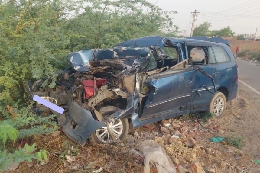 थाना प्रभारी भगाराम ने बताया कि मुंबई की तरफ से आ रही एक कार सड़क किनारे खड़े ट्रैलर से जा टकराई। कार बुरी तरह क्षतिग्रस्त हो गई और उसमें सवार चार लोगों की मौत हो गई। उन्होंने बताया कि मृतकों की पहचान सुरेश रावल, उनकी पत्नी सीता व बेटे प्रह्लाद (14) तथा एक रिश्तेदार विष्णु के रूप में हुई है। थाना प्रभारी ने बताया कि ये लोग जिले के डायलाना कलां गांव लौट रहे थे। उन्होंने बताया कि हादसे में घायल अनिता, दिया और हर्षिता का उपचार किया जा रहा है। उन्होंने बताया कि हादसा संभवत: कार चालक को झपकी आने के कारण हुआ और मामले की जांच की जा रही है।