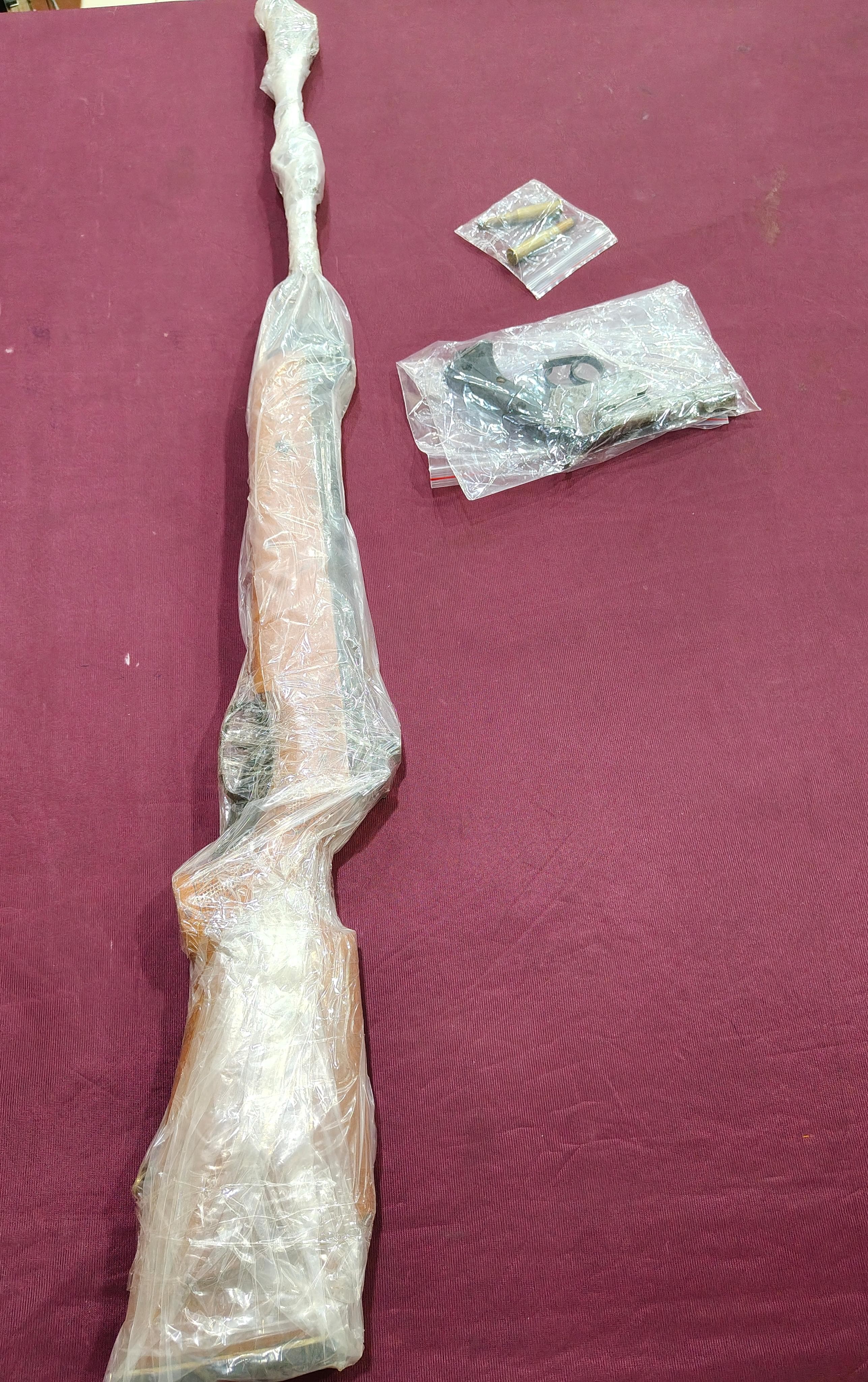 एक लोहे का बना देशी कट्टा तथा 02 नग जिदा कारतुस, एक सिंगल बेरल वाली बडी बंदुक