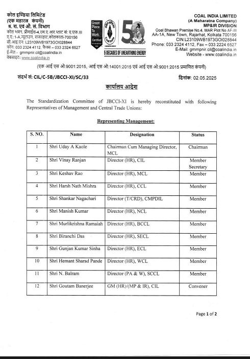 इस पुनर्गठन के साथ ही समिति अपनी नई जिम्मेदारियों को संभालने के लिए तैयार है। समिति का उद्देश्य कोल इंडिया की विभिन्न इकाइयों में काम करने की स्थिति और श्रमिकों के हितों की रक्षा करना है।