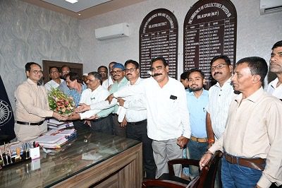 बिलासपुर,03 मई 2025(वेदांत समाचार) । अधिकारी-कर्मचारी फेडरेशन के पदाधिकारियों द्वारा कलेक्टर संजय अग्रवाल का पुष्प गुछ भेंट कर स्वागत किया। उन्होंने पूर्व में जारी जिले के कर्मचारियों के समस्याओं के निराकरण हेतु जनदर्शन कार्यक्रम को प्रत्येक मंगलवार को आयोजित करने का आग्रह किया। जिस पर उन्होंने सहमति देते हुए सभी अधिकारियों-कर्मचारियों को अपने कार्य को लगन के साथ करते हुए जिले में विकास कार्य को गति देने में योगदान देने कहा।