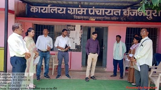 उत्तर बस्तर कांकेर,03 मई 2025(वेदांत समाचार) । छत्तीसगढ़ शासन के निर्देशानुसार सुशासन तिहार 2025 के तहत जनपद पंचायत भानुप्रतापपुर के समस्त ग्राम पंचायतों में गत दिवस जनचौपाल का आयोजन किया गया। कलेक्टर नीलेश कुमार महादेव क्षीरसागर के निर्देशानुसार जिला पंचायत के मुख्य कार्यपालन अधिकारी हरेश मण्डावी ने मैदानी अधिकारी, कर्मचारियों के साथ ग्राम कोरर, बैजनपुरी, भोडिया, कुल्हाडकट्टा, आसुलखार, फरसकोट में आयोजित जनचौपाल शिविरों का निरीक्षण कर ग्रामीणजनों से चर्चा की।