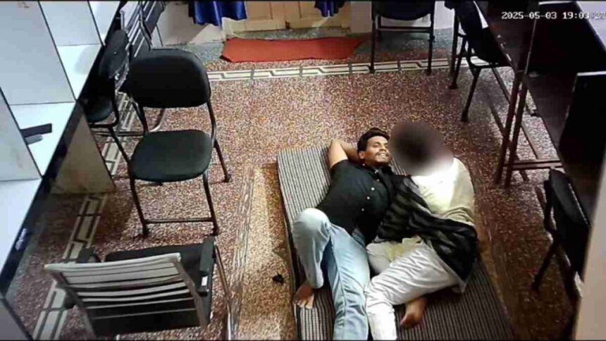 गद्दे में लेटकर छात्रा से अश्लील हरकत करते दिखा आरोपी
