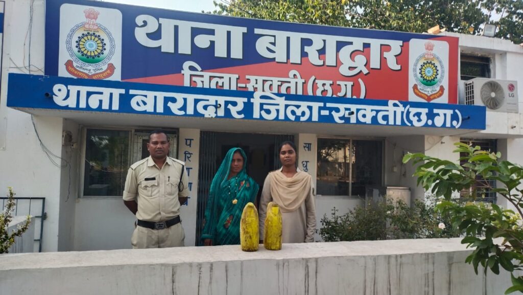 सक्ती, 07 मई। पुलिस अधीक्षक सक्ती सुश्री अंकिता शर्मा महोदया द्वारा क्षेत्र मे अवैध जुआ, गांजा व शराब बिक्री एवं परिवहन करने वाले आपराधियों पर अकुंश लगाने हेतु अधिक अधिक कार्यवाही करने की निर्देश पर थाना प्रभारी निरीक्षक लखन पटेल थाना बाराद्वार द्वारा दिनांक 06.05.25 को मुखबीर की सुचना पर ग्राम डेरागढ़ एवं रायपुराभांठापारा में अलग अलग टीम बनाकर रेड कार्यवाही कर आरोपी. विष्णु लाल बरेठ पिता राम स्वरूप बरेठ उम्र 56 साल निवासी डेरागढ़ थाना बाराद्वार जिला सक्ती(छग) एवं सरोजनी कुर्रे पति छोटे लाल कुर्रे उम्र 36 साल निवासी रायपूरा भांठापारा थाना बाराद्वार जिला सकती (छ0ग0) कब्जे से कुल 15 लीटर कच्ची महुआ शराब भरी हुई कीमति 1500/- रूपये को जप्त किया गया जिसे आबकारी एक्ट के प्रावधानो के तहत विधिवत कार्यवाही कर आबकारी अधिनियम का सबुत पाये जाने से आरोेपीयान को गिरफ्तार कर रिमांड पर मान.न्यायालय पेश किया गया।