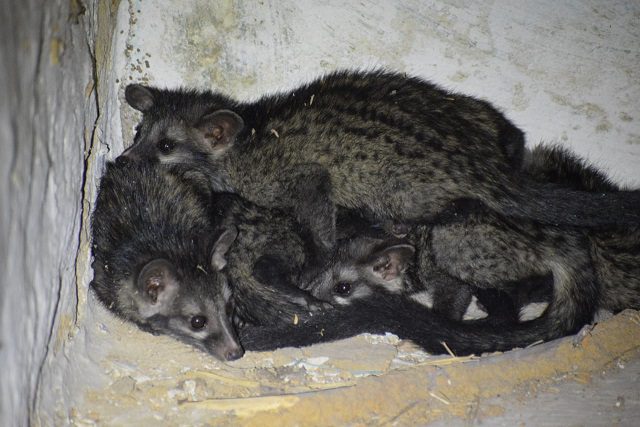 मादा सिवेट अपने बच्चों के साथ रह रही थी गांव में
