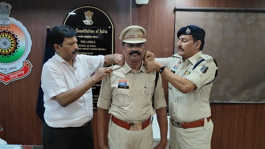 सूरजपुर, 17 मई (वेदांत समाचार)। बीते दिन पुलिस मुख्यालय रायपुर के द्वारा एएसआई से एसआई के पद पर पदोन्नति का आदेश जारी किया है जिसमें सूरजपुर जिले के एक एएसआई गंगा प्रसाद जायसवाल का नाम शामील है। मंगलवार, 13 मई 2025 को डीआईजी व एसएसपी सूरजपुर श्री प्रशांत कुमार ठाकुर ने पदोन्नत हुए एएसआई गंगा प्रसाद जायसवाल के कंधों पर स्टार लगाकर एसआई पद पर पदोन्नति दी। उन्होंने पदोन्नत हुए एसआई के उज्जवल भविष्य के लिए शुभकामनाएं दी और उन्हें कहा कि सेवा के अगले पड़ाव में पूर्ण निष्ठा, ईमानदारी से कर्तव्यों का निर्वहन करें।