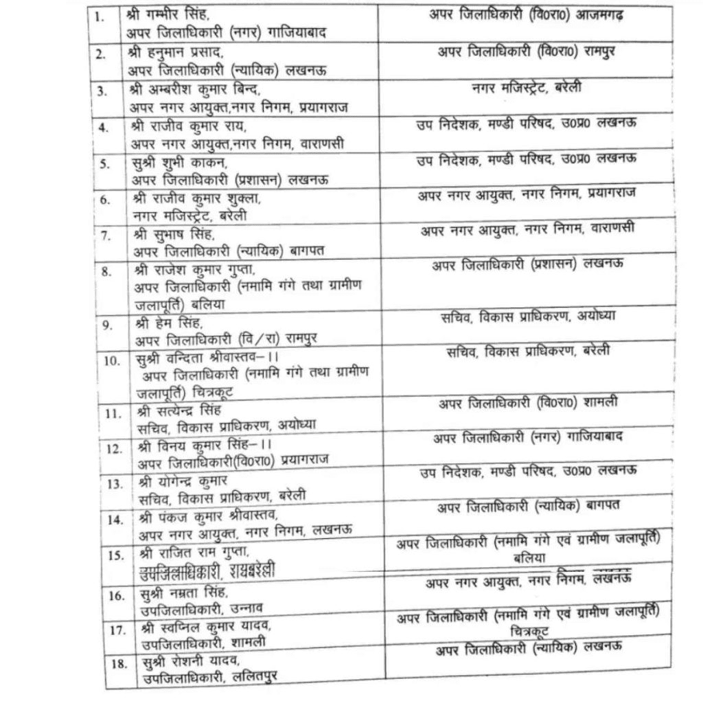 लखनऊ. प्रदेश में तबादलों का दौर जारी है. 18 पीसीएफ अफसरों के तबादला किया गया है. जिसका आदेश शासन ने जारी कर दिया है. जारी आदेश के मुताबिक, लखनऊ में अपर जिलाधिकारी (न्यायिक) पद पर हनुमान प्रसाद को अपर जिलाधिकारी रामपुर की जिम्मेदारी सौंपी गई है. इसके अलावा अपर जिलाधिकारी (नगर) गाजियाबाद गंभीर सिंह को अपर जिलाधिकारी आजमगढ़ का जिम्मा दिया गया है.