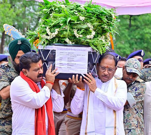 शहीद मेहुल भाई के पार्थिव शरीर को कंधा देकर दी अंतिम विदाई कहा – व्यर्थ नहीं जाएगा शहीद जवानों का सर्वोच्च बलिदान, नक्सलवाद के समूल नाश का संकल्प करेंगे पूरा