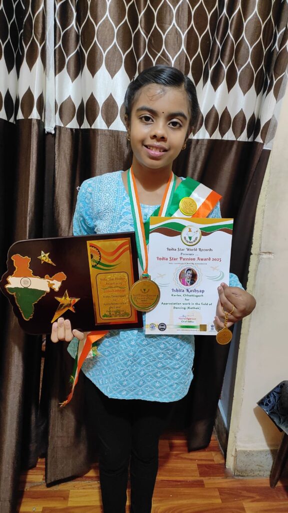 कोरबा ,24मई 2025(वेदांत समाचार) : हमारे देश की सांस्कृतिक धरोहर की सुगंध से महकती गौरवशाली परंपरा को गौरवमयी उपलब्धियों से समृद्ध करने वाली प्रतिभाओं की धनी ‘इशिता कश्यप’ को विगत दिनों इंडिया स्टार वर्ल्ड रिकॉर्ड्स द्वारा आयोजित इंडिया स्टार पैशन अवॉर्ड 2025 से सम्मानित किया गया है जो उसकी अभी तक की विशेष उपलब्धियों को देखते हुए दिया गया है
