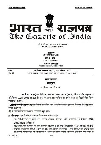 रक्षा मंत्रालय के मुताबिक, सरकार ने अंतर-सेवा संगठन (कमांड, नियंत्रण और अनुशासन) अधिनियम 2023 के तहत नियमों को अधिसूचित किया है, जो सशस्त्र बलों में अधिक संयुक्तता और कमांड दक्षता को मजबूत करेगा। अंतर-सेवा संगठन (कमांड, नियंत्रण और अनुशासन) अधिनियम 2023 के तहत तैयार नियमों को राजपत्र अधिसूचना के माध्यम से अधिसूचित किया गया है। यह 27 मई से लागू हो गए हैं।