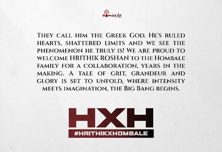 इसी को लेकर होम्बले फिल्म्स के फाउंडर विजय किरगंदूर ने कहा, “इस कोलैबरेशन को लेकर हम बेहद खुश हैं। होम्बले फिल्म्स में हमारा मकसद ऐसी कहानियाँ पेश करना है जो प्रेरणा दें और सीमाओं से परे जाकर लोगों के दिलों तक पहुंचें। ऋतिक रोशन के साथ जुड़ना हमारे उसी विज़न की ओर एक अहम कदम है, एक ऐसी फिल्म बनाना जहाँ इंटेंसिटी और इमैजिनेशन ग्रैंड स्केल पर मिलें। हम दर्शकों को एक ऐसा अनुभव देने के लिए कमिटेड हैं जो दमदार भी हो और यादगार भी।”