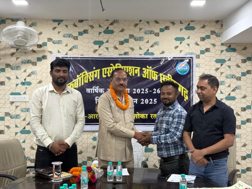 कोरबा, 01 जून । आज दिनांक 1 जून को आरती हाउस अशोका रतन सोसायटी में किकबॉक्सिंग एसोसिएशन ऑफ छत्तीसगढ़ के 2025-26 की सामान्य सभा की बैठक सम्पन्न हुई।