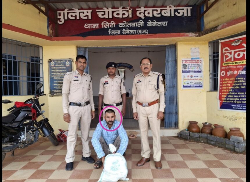 पुलिस ने बताया कि 08 जून 2025 को ANTF बेमेतरा पुलिस टीम को जरिये मुखबीर से सुचना मिला कि ग्राम तेन्दुआ नयापारा का राजेश पटेल अपने घर में अवैध रूप से बिक्री हेतु मादक पदार्थ गांजा रखा है। जिस पर वरिष्ठ पुलिस अधीक्षक बेमेतरा रामकृष्ण साहू (भा.पु.से.) के निर्देशन तथा अतिरिक्त पुलिस अधीक्षक श्रीमती ज्योति सिंह, एसडीओपी बेमेतरा मनोज तिर्की, एसडीओपी बेरला विनय कुमार के मार्गदर्शन में पुलिस चौकी देवरबीजा एवं ANTF बेमेतरा पुलिस टीम द्वारा सूचना के अधार पर ग्राम तेन्दुआ नवापारा आरोपी का घर पहुच कर रेड कार्यवाही कर पकड़ा गया।