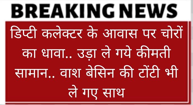 वह 6 जून की रात करीब 11 बजे शासकीय आवास का ताला बंदकर अपने गृह ग्राम गए थे। 11 जून को वापस लौटे तो आवास का पीछे का दरवाजा खुला था तथा रूम का अलमारी वगैरह खुला था और सामान इधर-उधर बिखरा पडा था। चोरों ने एक नग एलईडी टीवी, पर्स 3 नग, ट्रीमर 1 नग, बैड रूम का बल्ब 2 नग, ब्लूटूथ कनेक्टेड, वास बेसिन का 2 नग नल चोरी कर ले गए हैं। डिप्टी कलेक्टर ने मामले की रिपोर्ट गांधीनगर थाने में दर्ज कराई है। पुलिस ने अज्ञात चोर के खिलाफ धारा 305 (ए), 331 (4) के तहत रिपोर्ट दर्ज कर विवेचना शुरू कर दी है।