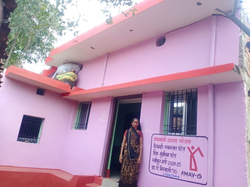 जांजगीर-चांपा, 17 जून 2025। जिले के जनपद पंचायत बलौदा अंतर्गत ग्राम पंचायत बिरगहनी (च) निवासी स्व. श्री लखन लाल पटेल, जो कि बेहद गरीब स्थिति में अपनी पत्नी श्रीमती सुमित्रा पटेल के साथ एक जर्जर मिट्टी के मकान में जीवन यापन कर रहे थे, ऐसे में जब उनके परिवार के लिए प्रधानमंत्री आवास योजना (ग्रामीण) बना तो वह बेहद ही खुश हुए, लेकिन कुछ समय पहले ही स्व. श्री लखनलाल की आकस्मिक मृत्यु हो जाने के चलते यह पीएम आवास में अपने पति की यादों के सहारे अब श्रीमती सुमित्रा पटेल रह रही हैं।