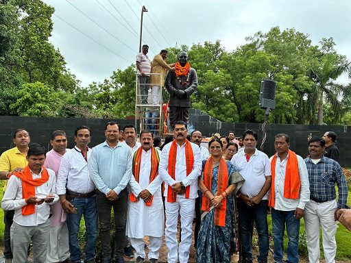 जिला अध्यक्ष गोपाल मोदी की अध्यक्षता में कार्यकर्ताओं ने प्रतिमा पर पुष्प अर्पित कर किया नमन