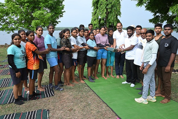 रायपुर, 24 जून (वेदांत समाचार) I योग कार्यक्रम का आयोजन: “करे योग रहे निरोग, बढ़ाए देश की सेहत और योग को अपनाएं”रायपुर में रुद्री की पावन धरा रुद्रेश्वर महादेव की भूमि पर योग कार्यक्रम का आयोजन किया गया, जिसमें मुख्य अतिथि के तौर पर शामिल होने का अवसर मिला। यह आयोजन मां भारती फिजिकल आर्मी ट्रेनिंग के संचालक श्री पीतांबर नंदेश्वर जी द्वारा किया गया, जो पूर्व सैनिक हैं और आर्मी, अग्निवीर व एयर फोर्स के लिए कोचिंग सेंटर चलाते हैं।