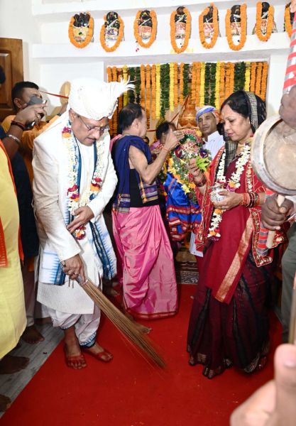 रायपुर, 27 जून 2025/ जशपुर ज़िले के ऐतिहासिक एवं प्राचीन श्री जगन्नाथ मंदिर दोकड़ा में इस वर्ष भी रथयात्रा महोत्सव का आयोजन परंपरागत श्रद्धा, भक्ति और भव्यता के साथ किया गया। मंदिर से रथ यात्रा के रवाना होने से पहले मुख्यमंत्री श्री विष्णुदेव साय एवं उनकी धर्मपत्नी श्रीमती कौशल्या देवी साय ने जगन्नाथ मंदिर में पूरे विधि-विधान से भगवान श्री जगन्नाथ, भाई बलभद्र एवं बहन सुभद्रा की पूजा-अर्चना कर प्रदेशवासियों के सुख, समृद्धि और कल्याण की मंगलकामना की। मुख्यमंत्री विष्णुदेव साय ने झाडू से रथयात्रा के मार्ग को बुहारकर छेरा-पहरा की रस्म निभाई।